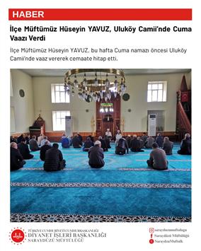 İlçe Müftümüz Hüseyin Yavuz, Uluköy Camii’nde Cuma Vaazı Verdi