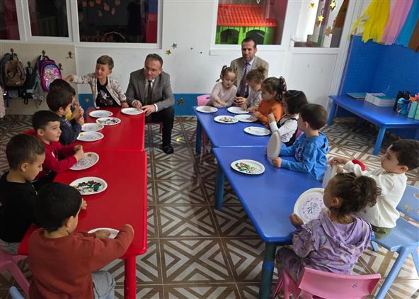 İl Müftüsü Paşa Bektaş, Şube Müdürü Hasan Karataş ile birlikte; Keleşoğlu 4-6 Yaş Kur'an Kursu'nu ziyaret etti.