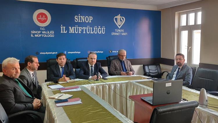 İl Müftüsü Paşa Bektaş, Müftü Yardımcıları Yaşar Sanlav ve Dr. Abdullah Salman, Müftülük Şube Müdürleri ile birlikte, İlçe Müftüleri 'nin katılımıyla zoom üzerinden online toplantı gerçekleştirdi.
