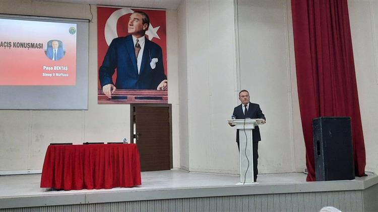 İl Müftüsü Paşa Bektaş'ın başkanlığında, Sinop Şehit Şakir Elkovan Halk Eğitim Merkezi Konferans Salonunda Aylık Mutat Toplantısı ve göreve yeni başlayan 70 Din Görevlisi ile ilgili program gerçekleştirildi.