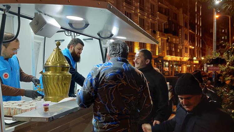 Sinop İl Müftülüğü tarafından, Deniz Şehitleri Hacı Ömer Camii'nde kılınan teravih namazı akabinde cemaate Türkiye Diyanet Vakfı'nın mobil ikram aracından ikramda bulunuldu.