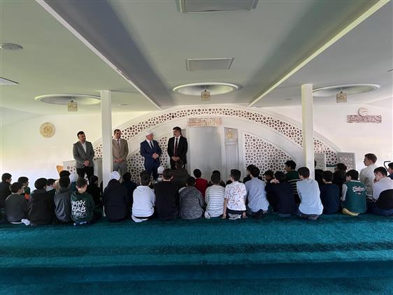 Diyanet İşleri Başkanlığı Başmüfettişi Fazıl Ahmet Ertürk, İl Müftüsü Paşa Bektaş ve Şube Müdürü Hasan Karataş ile birlikte, Bölge Yatılı Hafızlık Kur'an Kursu'nu ziyaret ederek öğrencilerle bir araya geldiler.