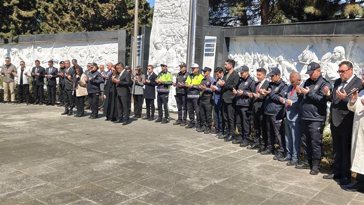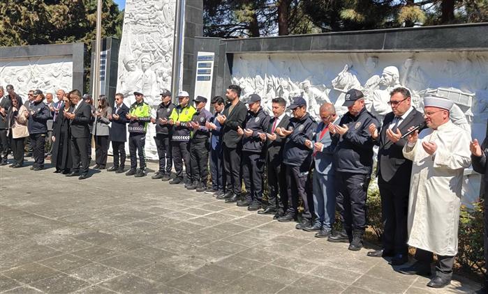 İl Müftüsü Paşa Bektaş, İl Emniyet Müdürü Sibel Kılıçoğlu ve vatandaşlar ile birlikte; Şehit Polis Memuru Salih Saraç'ı sene-i devriyesinde kabri başında dualarla yâd ettiler.